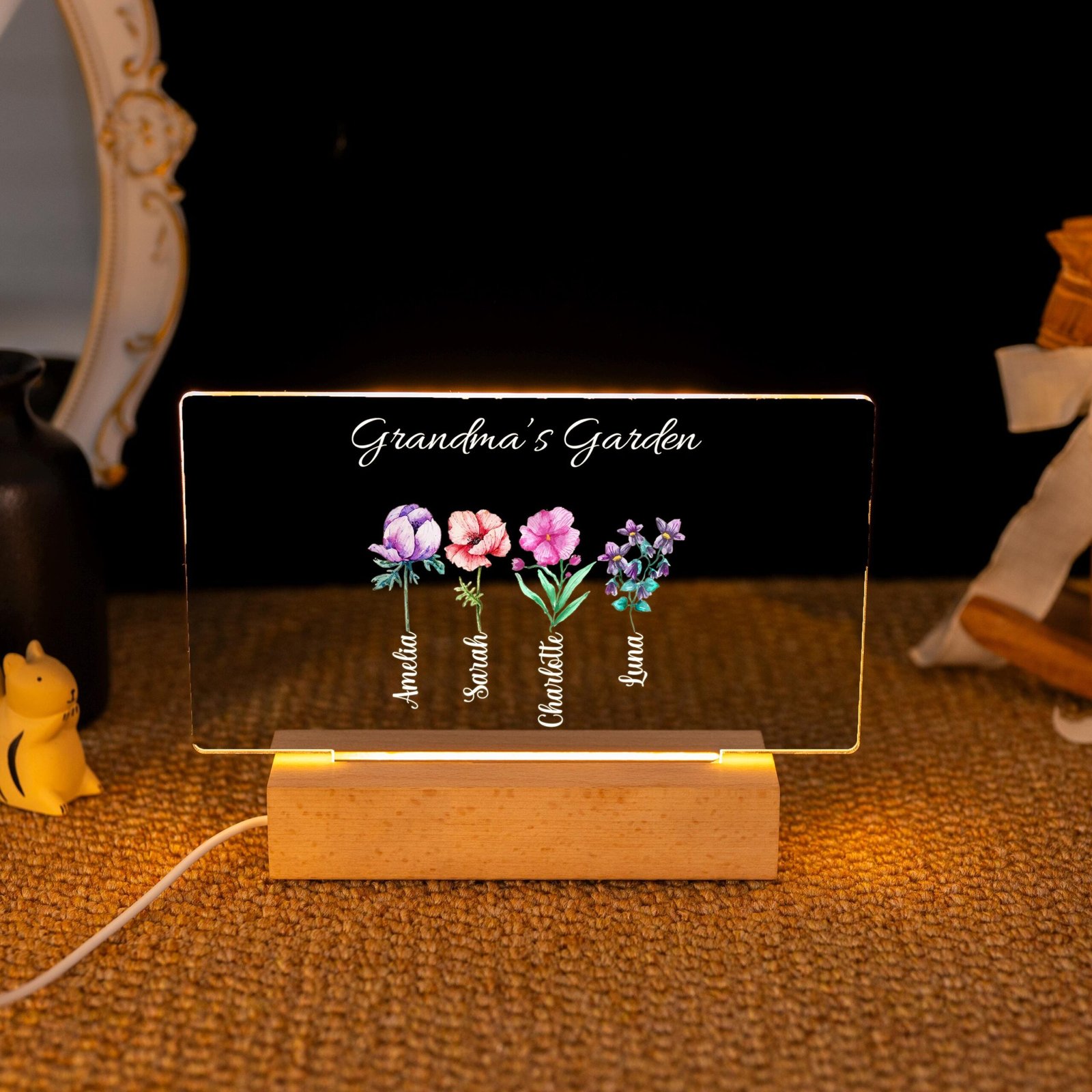 Grandmothers have a special place in every family, and what better way to honor that love than with a garden of flowers that represents each child or grandchild? The Custom Grandma‘s Garden Birth Month Flowers night light is more than décor — it’s a symbol of her role as the heart of the family.