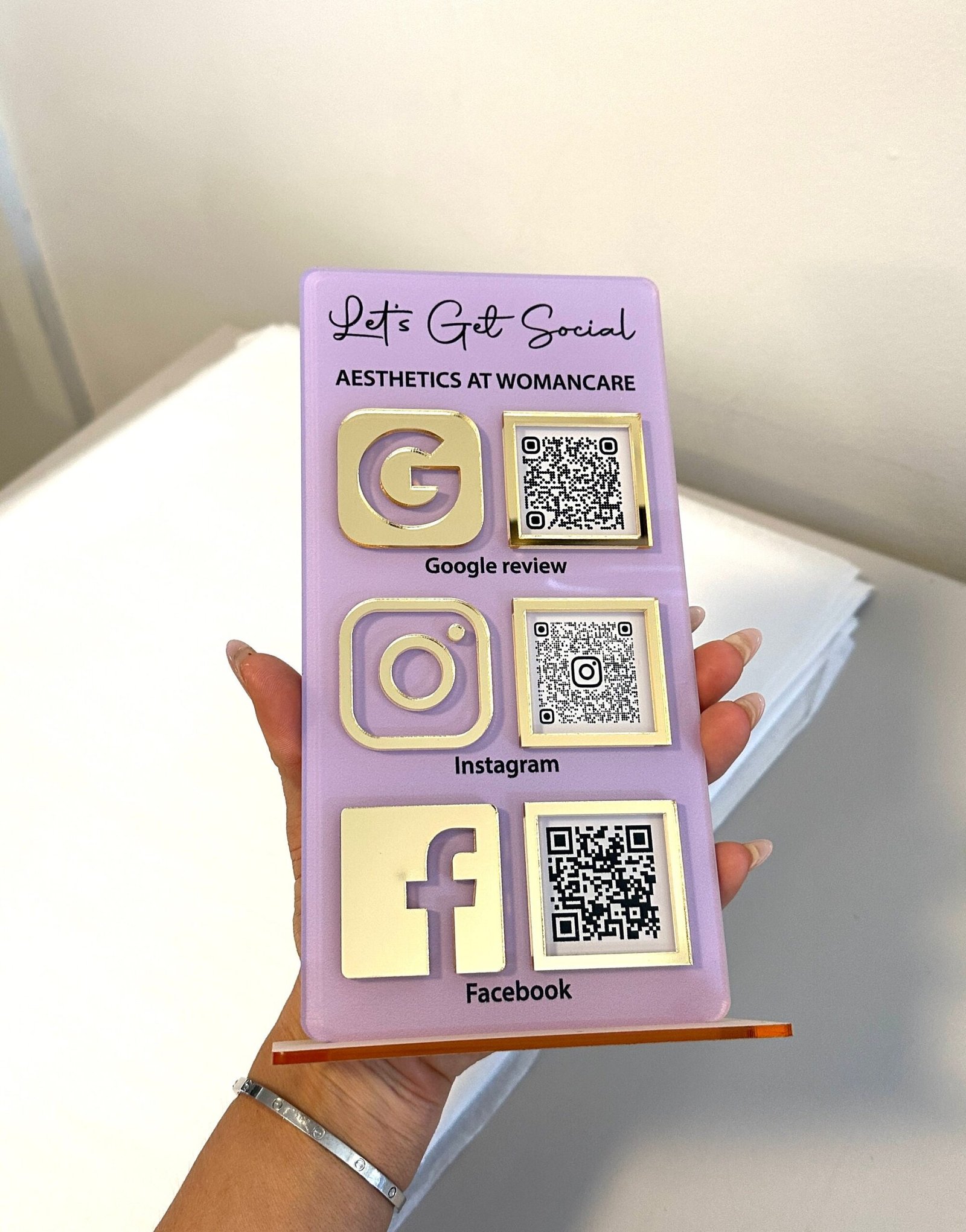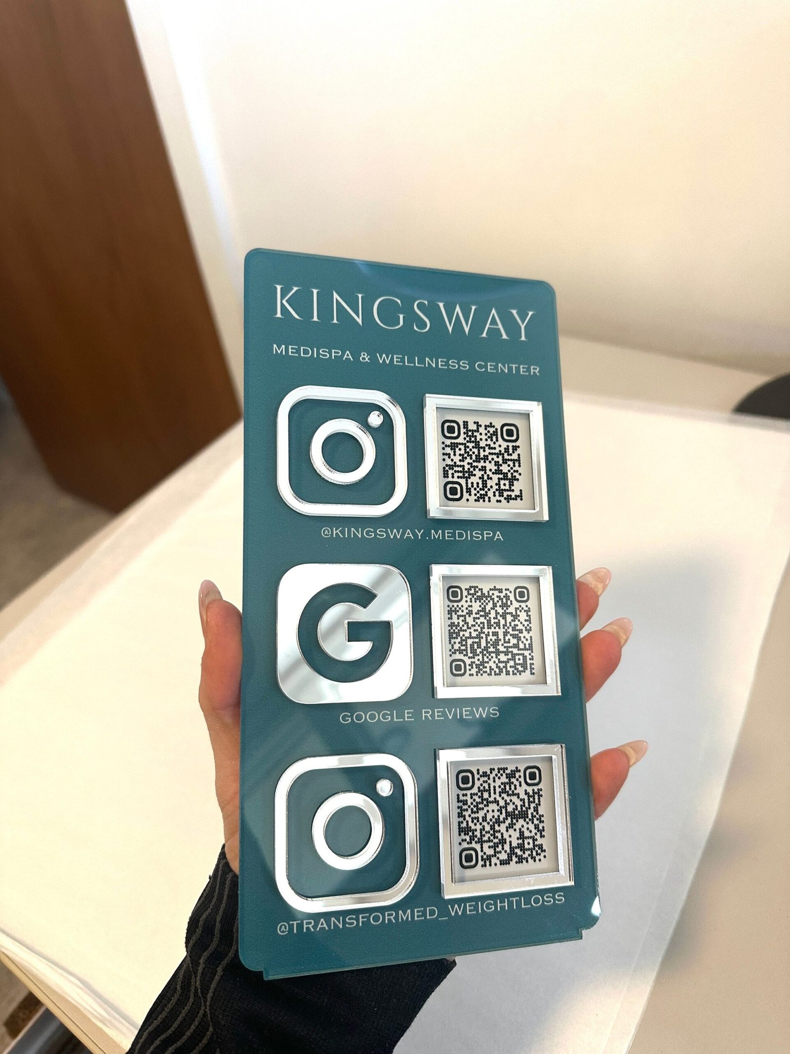 With options for multiple QR codes and a sleek design that matches your décor, this sign is more than just a display — it’s a smart business tool that keeps your brand modern, accessible, and professional.
