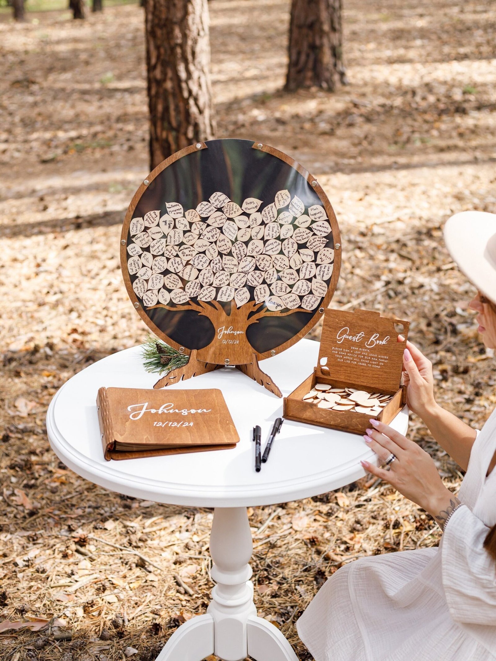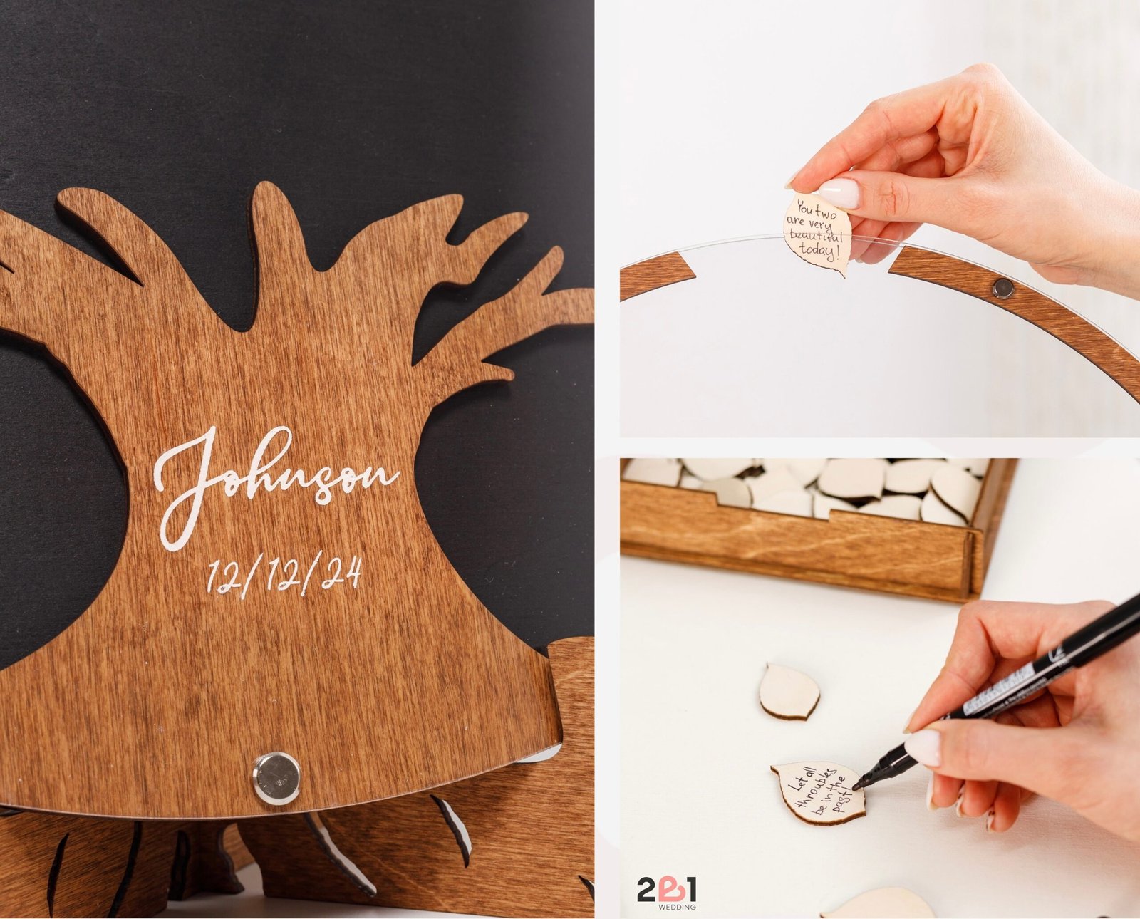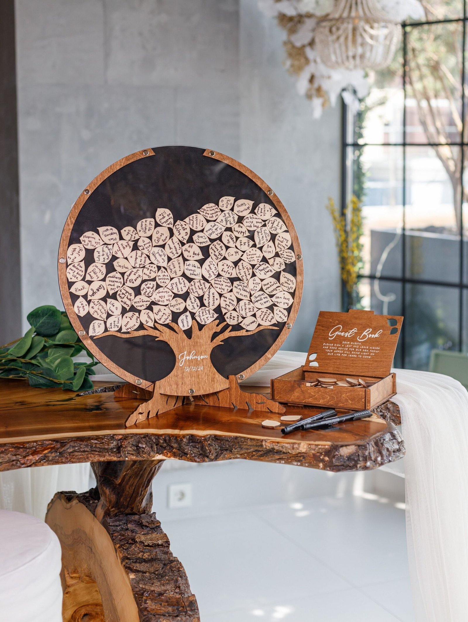 • Versatile Guest Signatures – Guests can sign directly on the wood leaves or write personal notes on add-on pieces.