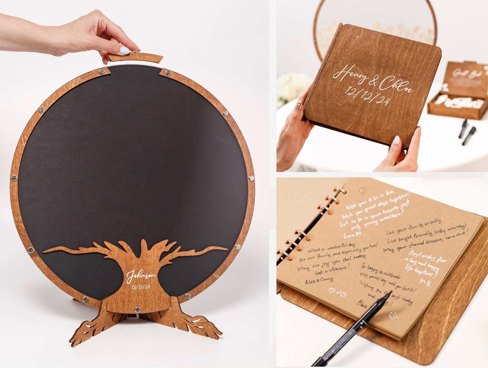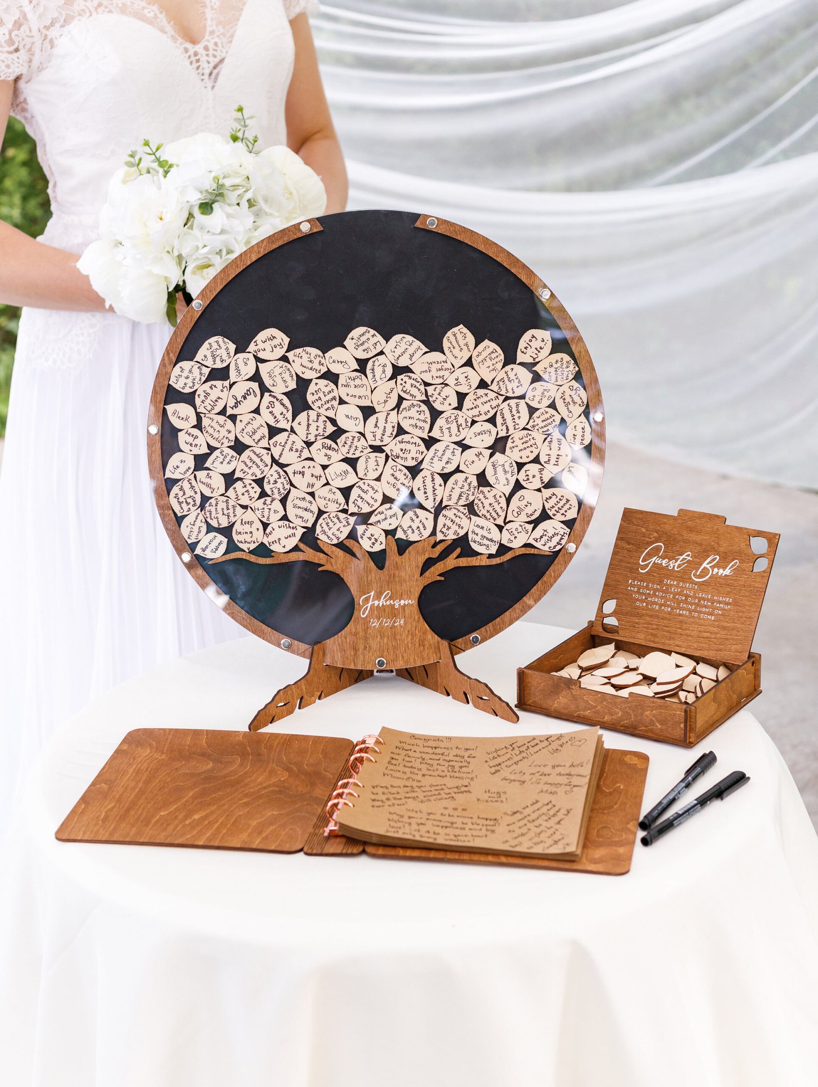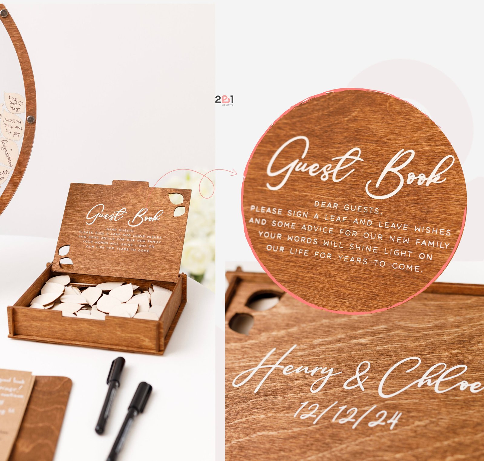 • Versatile Guest Signatures – Guests can sign directly on the wood leaves or write personal notes on add-on pieces.