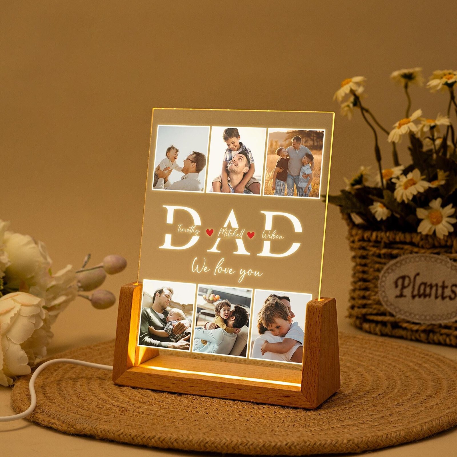 Conclusion: Brighten your husband or Dad’s bedroom and heart with a personalized photo night light that adds a touch of warmth and personalization to their space. This unique custom name light is a perfect holiday gift that showcases cherished memories and celebrates the best Dad ever. Illuminate their room with love and light through a thoughtful and sentimental gift that creates a cozy ambiance and brings a smile to their face. Give the gift of illumination and memories with a personalized night light that brightens up their world.
