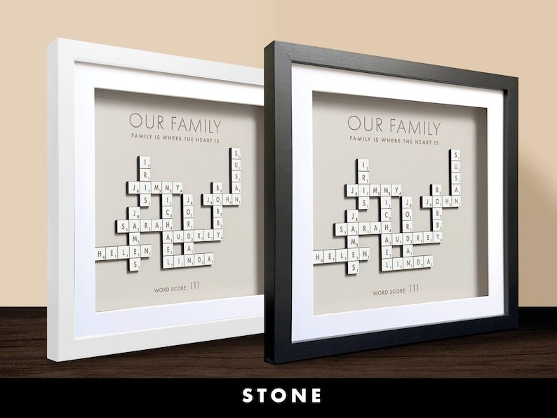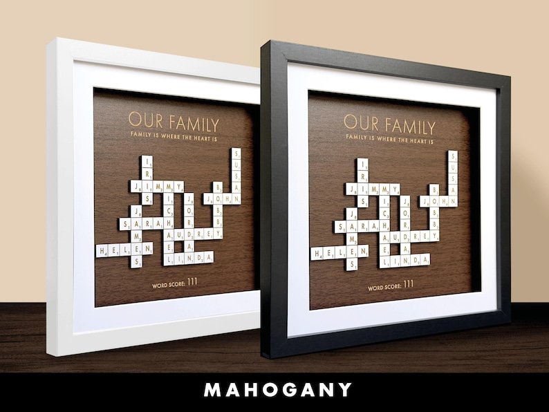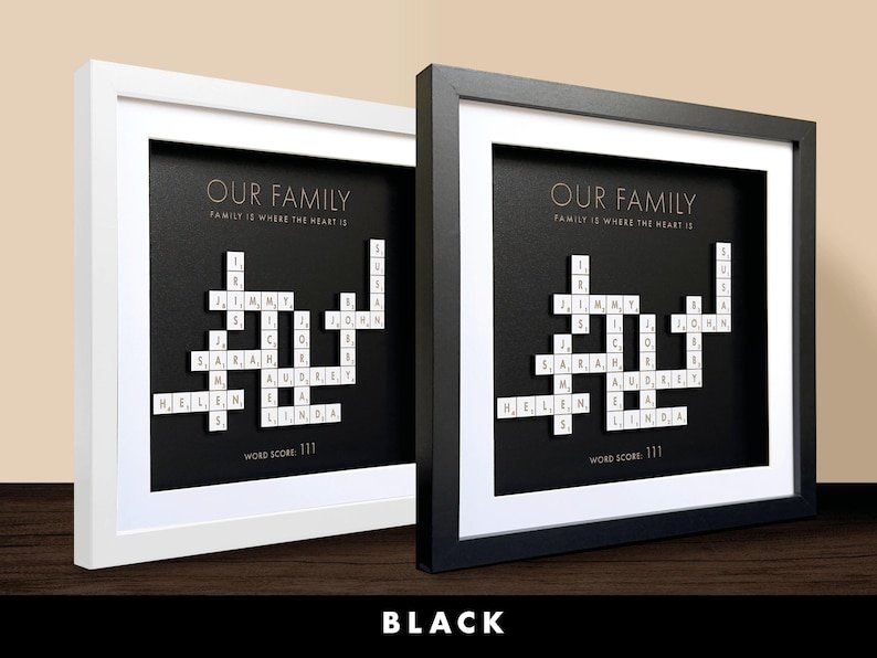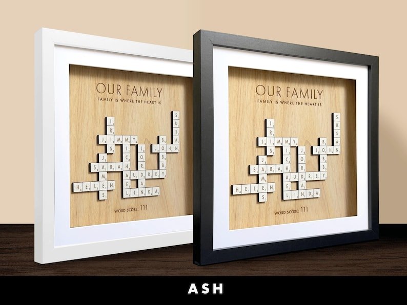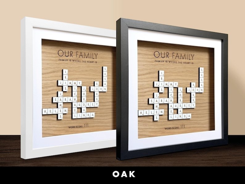 Recommendation: For a heartfelt and sentimental gift that honors your family’s love and history, consider presenting a personalized Scrabble family names frame to your loved ones this Christmas, on special occasions such as grandparents’ birthdays, or as a unique family tree display. Each custom letter tile in the frame tells a story and adds a personal touch, making this gift a cherished keepsake that captures the essence of your family’s bond and unity. Explore our collection of personalized Scrabble family names frames and give the gift of lasting memories and love to your beloved family members.