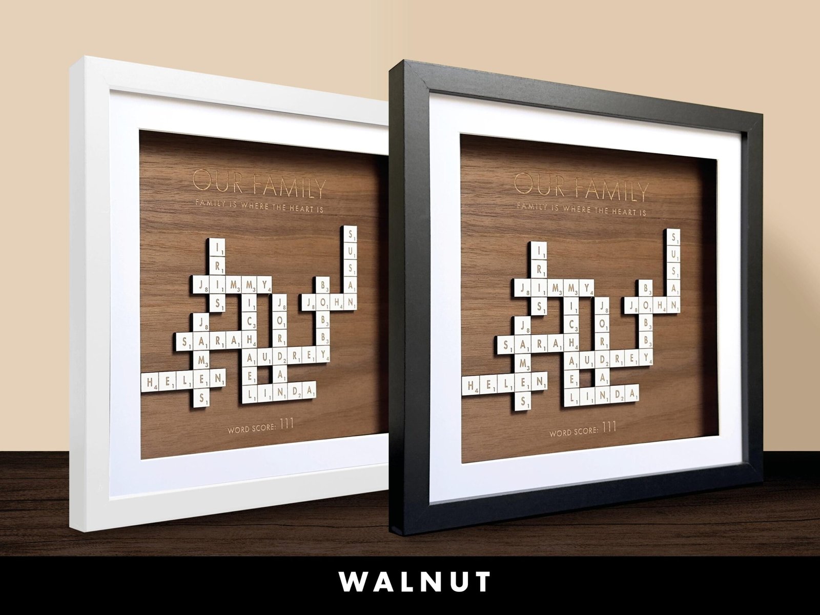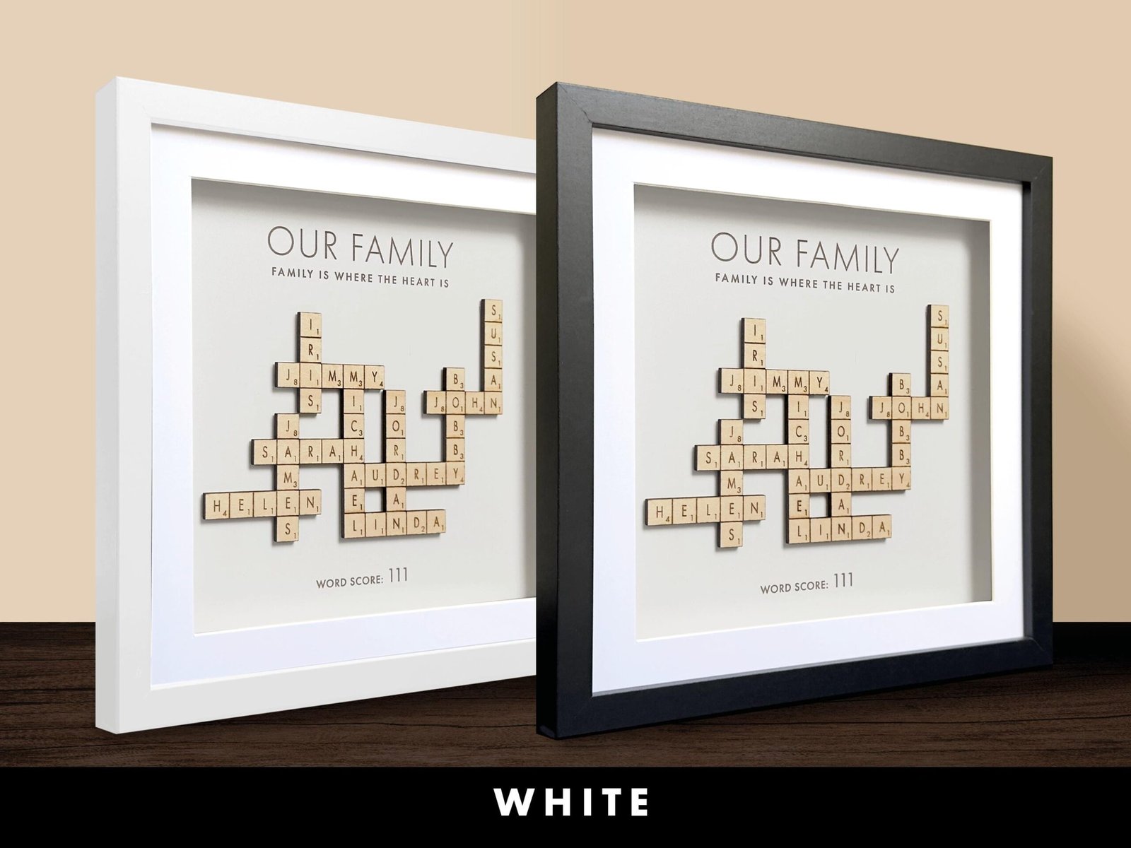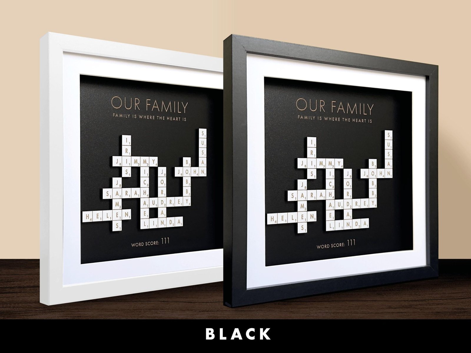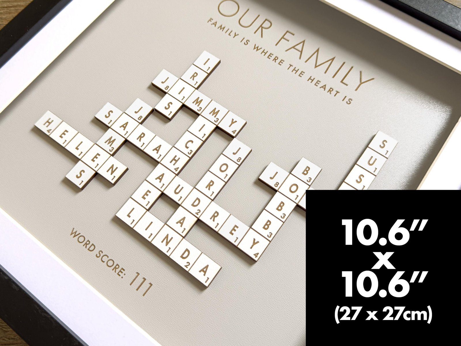 • Handcrafted Quality: Each Scrabble family names frame is carefully made with attention to detail, ensuring a beautiful and lasting piece for your home.